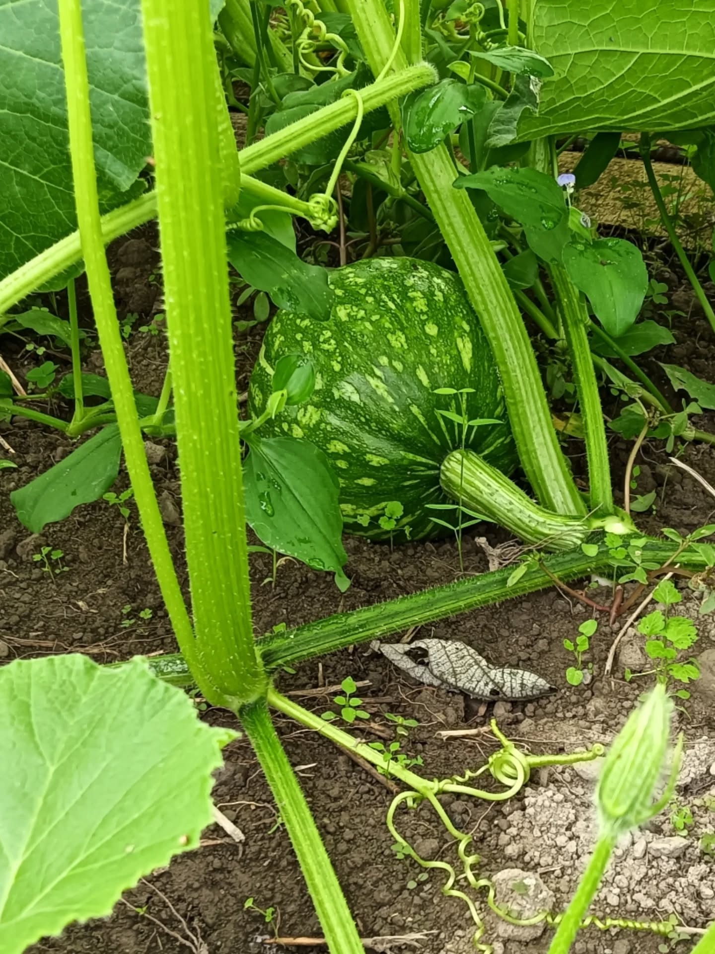 昨夜のうちに雨☔が降っていたみたいで朝は稲刈りできそうになかったので、放置栽培の😅カボチャ🎃のツルを整えたり成長をチェックしたたあと😊、サツマイモの収穫をしていました🍠