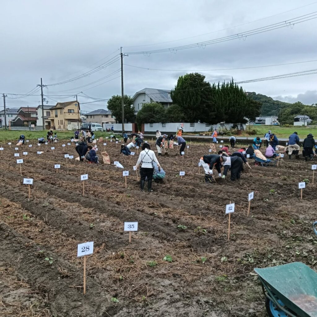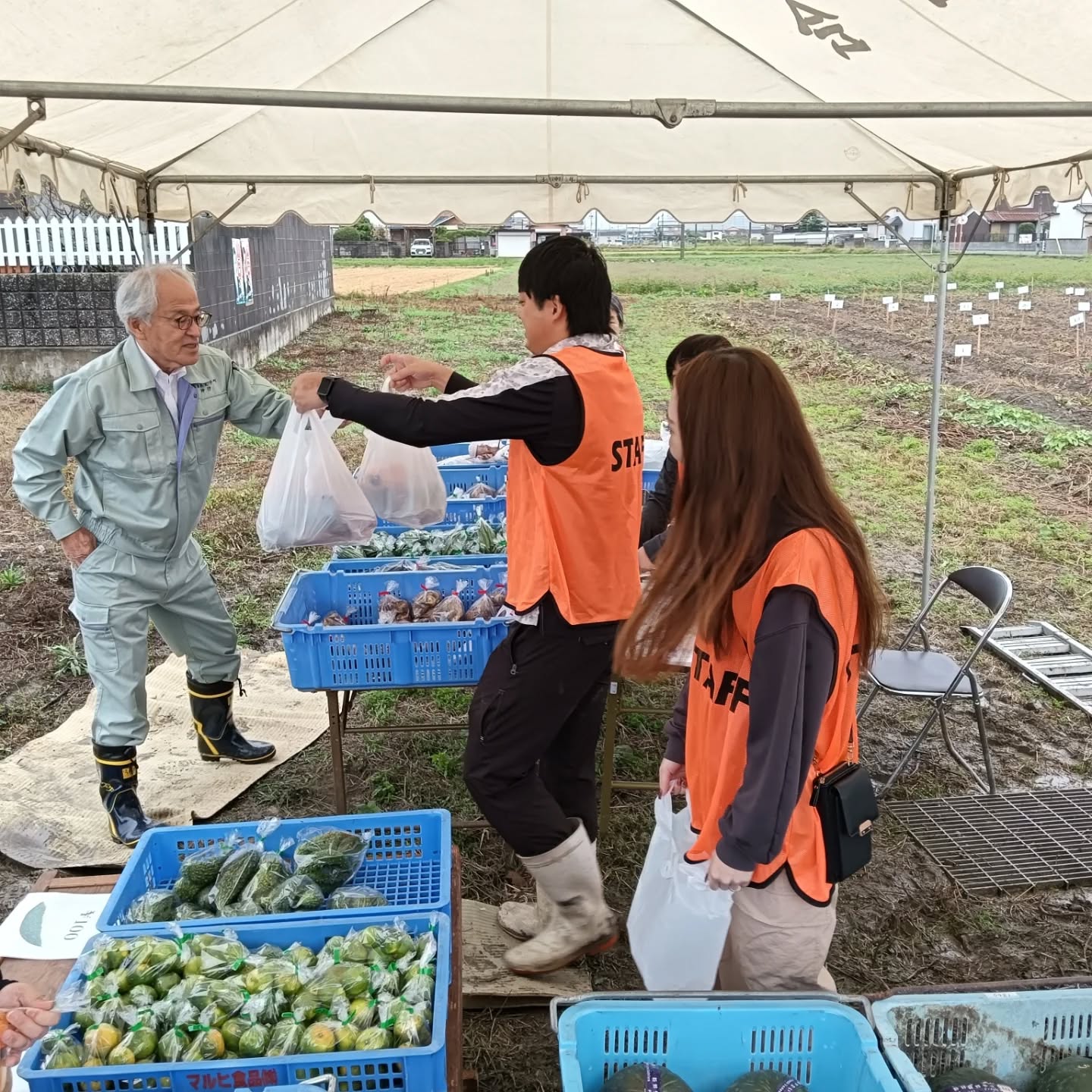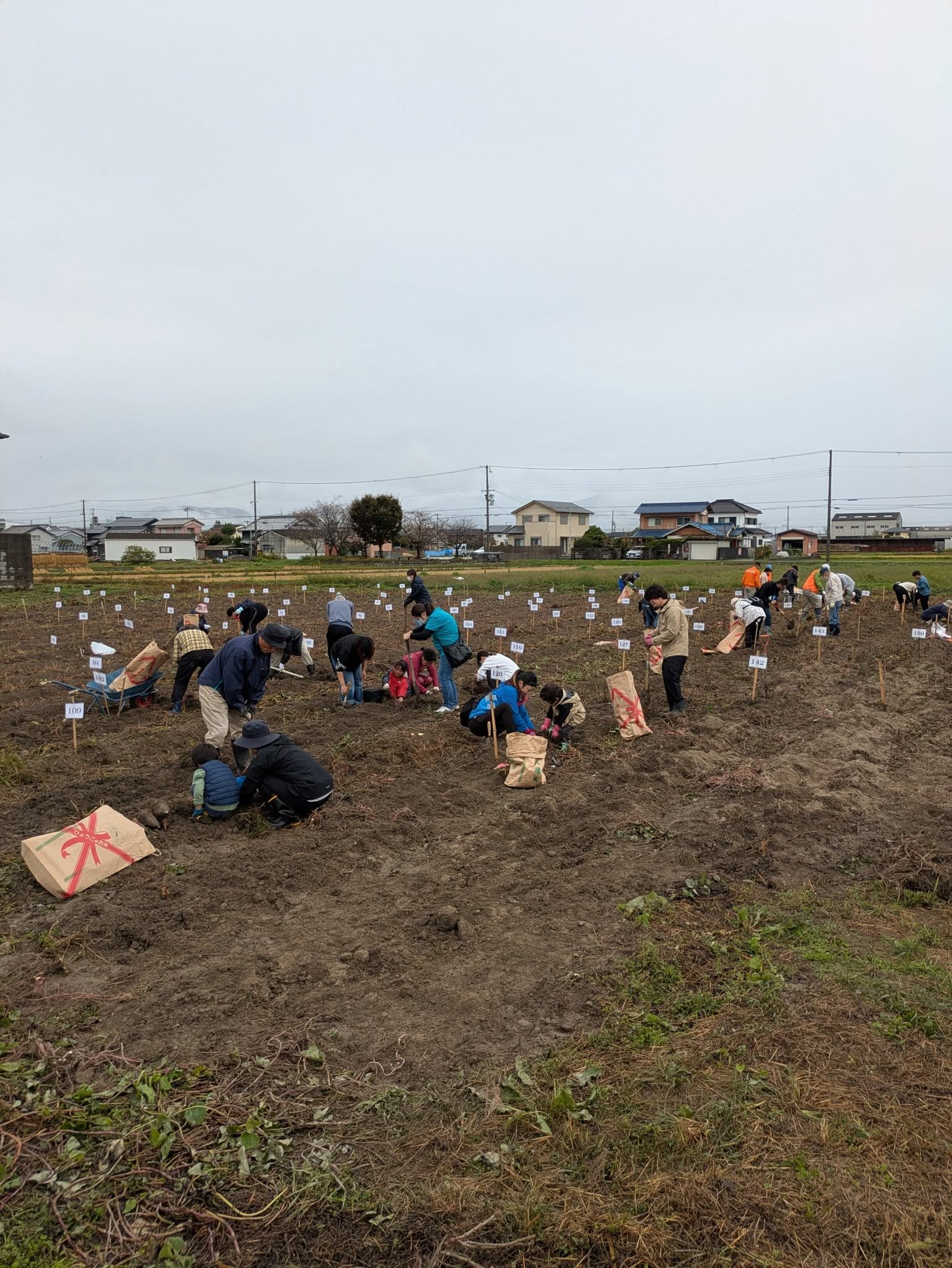 「R7.さつまいも収穫祭」が実施されました 2025年10月26日 Filed under: お知らせ,お米,野菜 たまふぁーむ 朝から雨の降るなか☔地元営農のさつまいも収穫祭が実施されました🍠 たまふぁーむからは、収穫したばかりの新米4品種と、今ある野菜や果物を直売させていただきました🙇 さつまいもは「紅はるか」で1区画10株…全160区画を栽培していましたが、ほぼ完売の盛況ぶりで、土がぬかるんで掘りにくい中でも、大きなサツマイモがでてきて歓声が聞こえてきたリ、参加いただいた皆さんには楽しんでもらえたのではないかと思います😊 次は6月にじゃがいも収穫祭が実施される予定ですので、ご都合が合えばぜひお越しくださいね😉