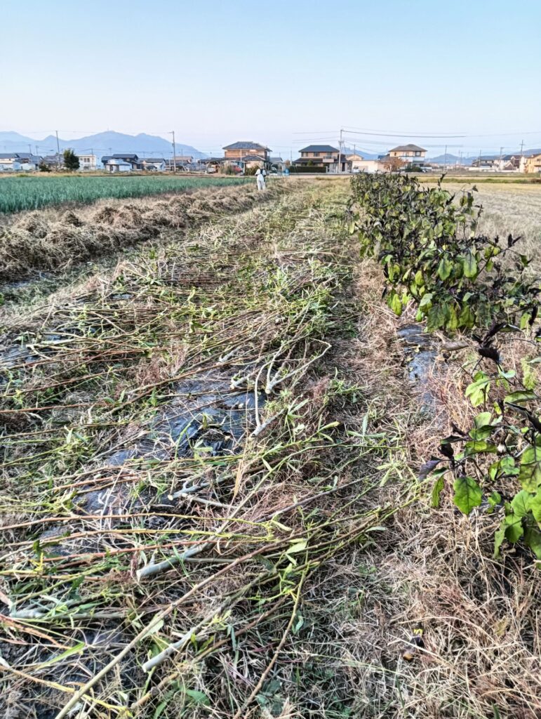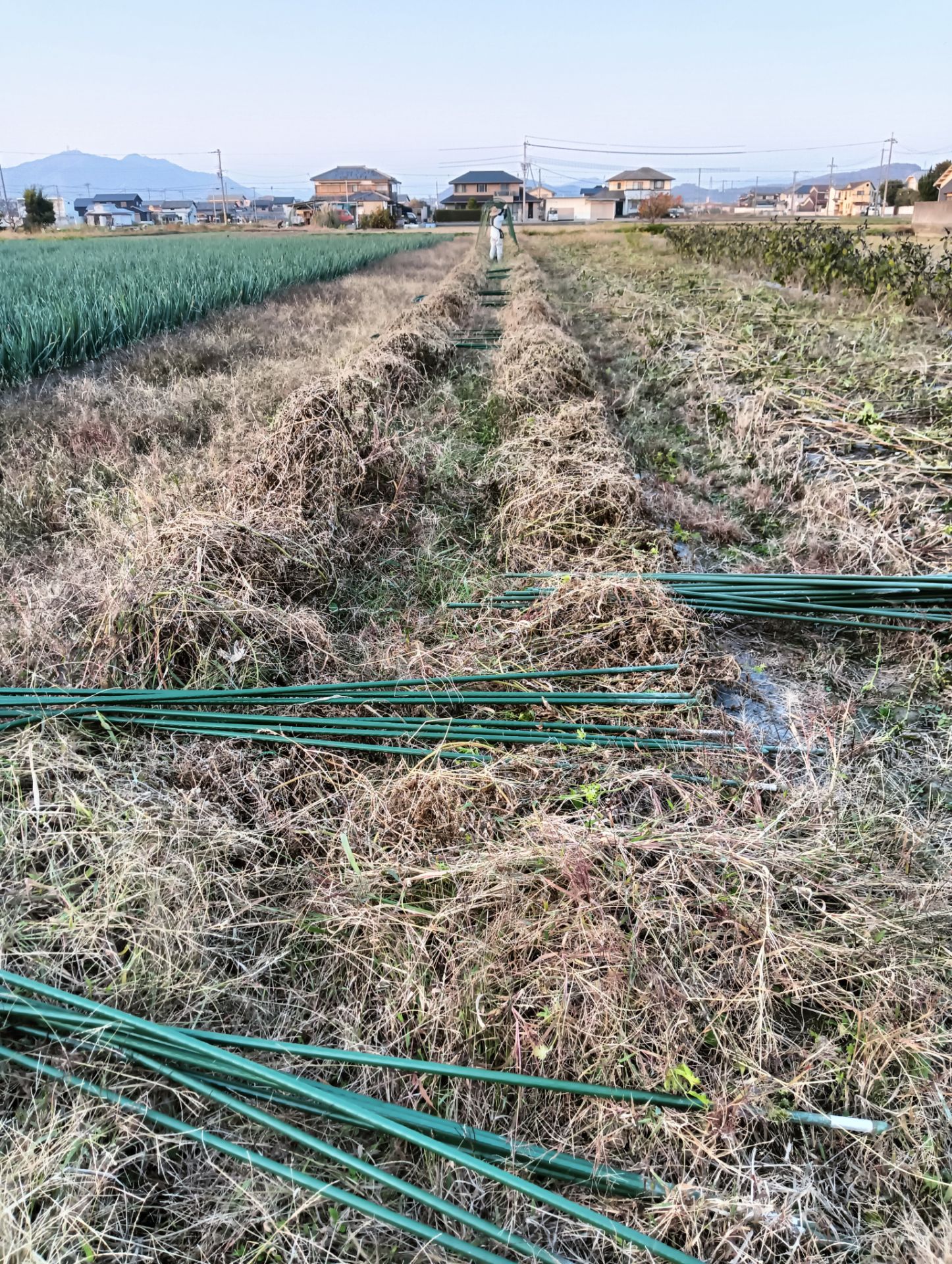 夏野菜を片付けました 2025年12月1日 Filed under: お知らせ,野菜 たまふぁーむ 秋になっても暑さが続いたこともあって長い間収穫できたオクラ、ゴーヤー、ナスでしたが、やっと片づけができました😊 …といっても、まだ支柱を外したり、根元で切断したり、引っこ抜いたりしただけですが、キャベツの苗🌱を定植できる時期までにはキレイになっている予定です😉