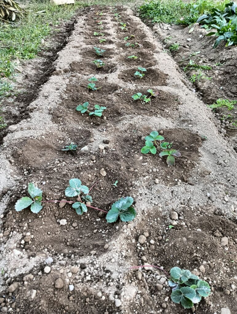 イチゴの定植 2025年12月2日 Filed under: お知らせ,果物,野菜 たまふぁーむ イチゴの定植をしました🍓 本当なら今春の親株から子株、孫株と増えて苗がたくさんできていたハズなのですが、水やりが少なかったのか、暑すぎたのか、苗作りはほぼ失敗に終わりました😭 近くのホームセンターで苗が半額になっていたので30株ほど買い足して植えました。 来春においしいイチゴになりますように…😋